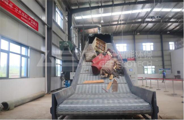 這條生產(chǎn)線主要由金屬鏈板輸送機、大件垃圾撕碎機、除鐵系統(tǒng)、密封式皮帶輸出系統(tǒng)、脈沖除塵系統(tǒng)和智能控制系統(tǒng)組成。重載鏈板輸送機可滿足大體積、大重量物件的快速輸送;大件垃圾撕碎機動力強勁、剪切力大,撕碎大件家具不在話下;自卸式除鐵器磁場強度高、吸力大、自動化程度高;密封式皮帶機輸送能力大、功率消耗小、防塵效果好;脈沖除塵系統(tǒng)清灰動能大、除塵效率高;智能控制系統(tǒng)采用西門子PLC+觸摸屏控制,通過對液壓、軸承、電機、減速機等關鍵部位監(jiān)測,實現(xiàn)多重保護,保障安全運行。