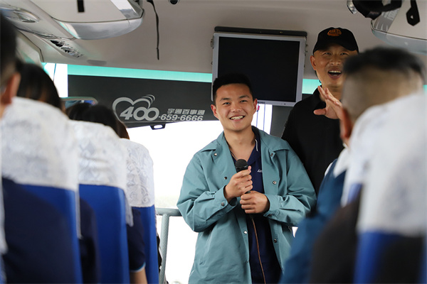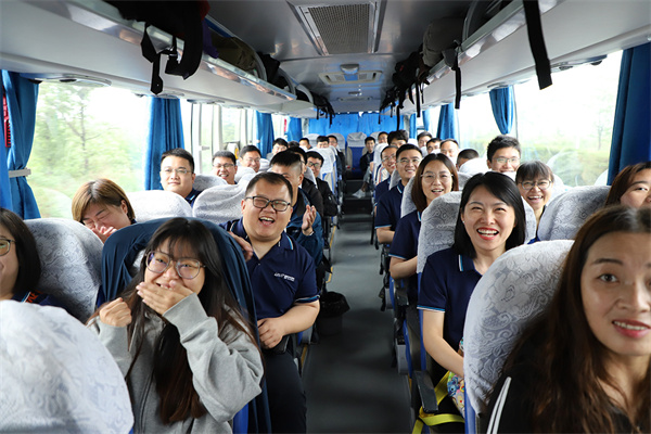 5月15日七點(diǎn)半,營(yíng)銷系統(tǒng)全體成員正式出發(fā),踏上了一場(chǎng)充滿未知和挑戰(zhàn)的旅途。小伙伴們的內(nèi)心或許有些忐忑,但車上愈發(fā)高漲的互取代號(hào)的破冰環(huán)節(jié)讓大家逐漸卸去拘謹(jǐn)?shù)耐鈿?,沉浸在輕松愉悅的氛圍中。
