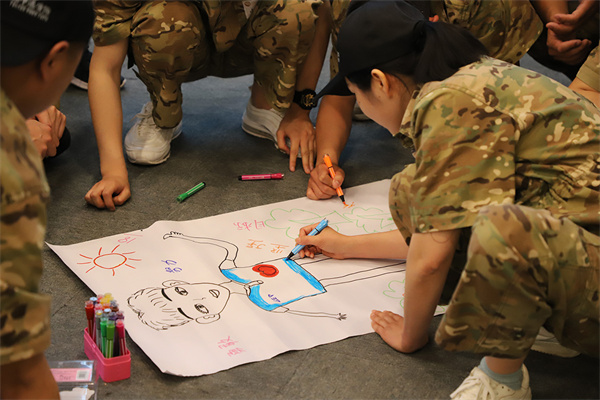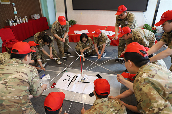 十分鐘組建完成的紅牛隊(duì)和超越隊(duì)一點(diǎn)也不簡(jiǎn)單。你聽(tīng),“紅牛紅牛,世界一流!”,“超越自我,勇往直前!”氣勢(shì)如虹,雄心昭顯;你看,紅黑雙色的帽子,就是我們與眾不同的標(biāo)志。平日簡(jiǎn)單尋常的隊(duì)列訓(xùn)練,成了我們比拼的第一戰(zhàn)場(chǎng),不想做俯臥撐的我們,斗志昂揚(yáng),全力以赴。