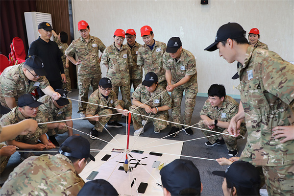 這是一個(gè)智力和體力同考驗(yàn)的項(xiàng)目,累并快樂(lè)著。看似難以穿過(guò)的四方格,被我們的齊心協(xié)力徹底征服了。原來(lái)困難并沒(méi)有我們想象的那么大,總指揮的周密部署、合理的統(tǒng)籌安排、資源的優(yōu)化配置、團(tuán)隊(duì)的眾志成城,一切困難都是“紙老虎”。