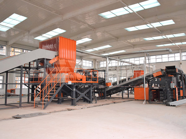 大件(園林)垃圾被放到鏈板輸送機上,送到大功率雙軸破碎機里,由電機+減速機驅(qū)動破碎刀片組對它們進行破碎。破碎完成后,在磁力作用下,鐵釘、鐵絲、鐵皮等鐵件會被磁選機自動分揀出來。整個廢舊床墊的處置過程僅僅用了不到一分鐘的時間,分揀出來的鐵件回收再利用,其余碎片則進行壓縮打包送到下游企業(yè)進行資源再利用。