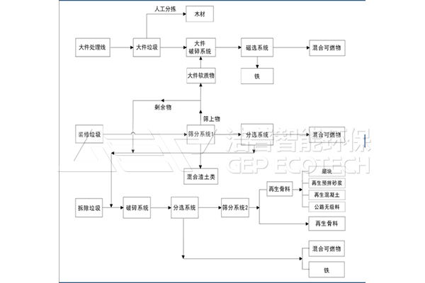 拆除垃圾+裝修垃圾+大件垃圾三位一體聯(lián)合處置工藝: